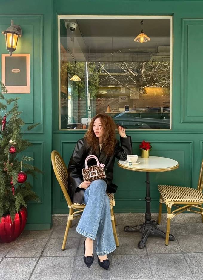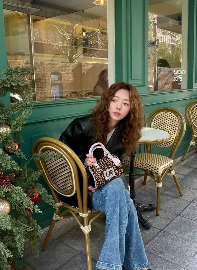 채수빈, 뽀글뽀글 파마 머리도 로맨틱! 오버핏 레더 재킷 찰떡 카페 프렌치룩