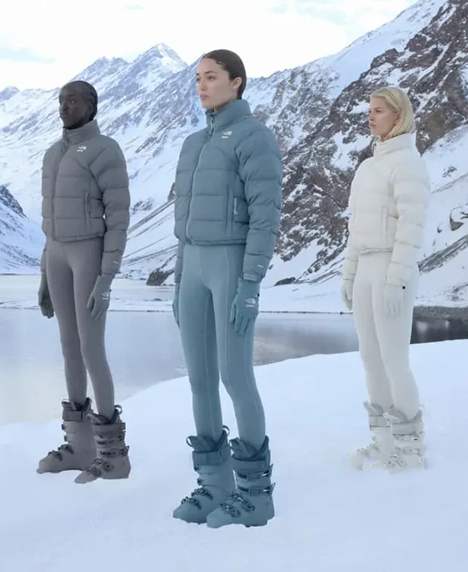 카다시안이 전개하는 '스킴스(SKIMS)'와 노스페이스가 두 번째 협업 한정판 스키웨어 컬렉션을 출시했다.