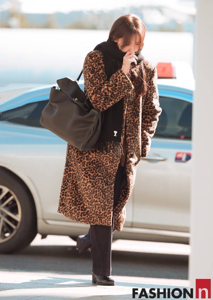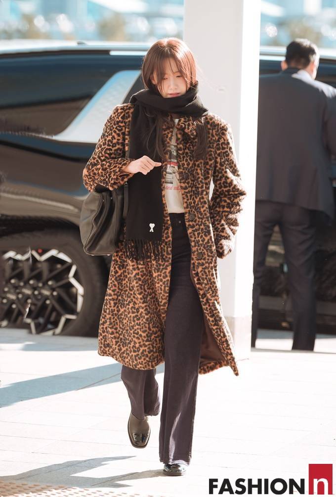 [패션엔 포토] 소녀시대 윤아, 멋쟁이 얼죽코! 강렬한 존재감 레오파드 코트룩 대만 출국