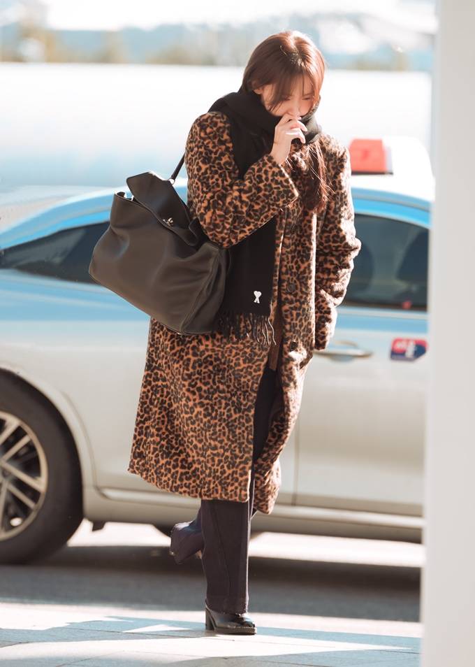 [패션엔 포토] 소녀시대 윤아, 멋쟁이 얼죽코! 강렬한 존재감 레오파드 코트룩 대만 출국