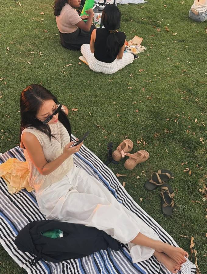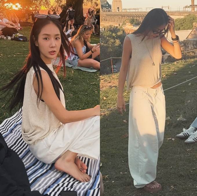 씨스타 출신 가수 소유가 호주에서 헐렁한 루즈 핏 피크닉룩으로 저녁 노을을 즐겼다.