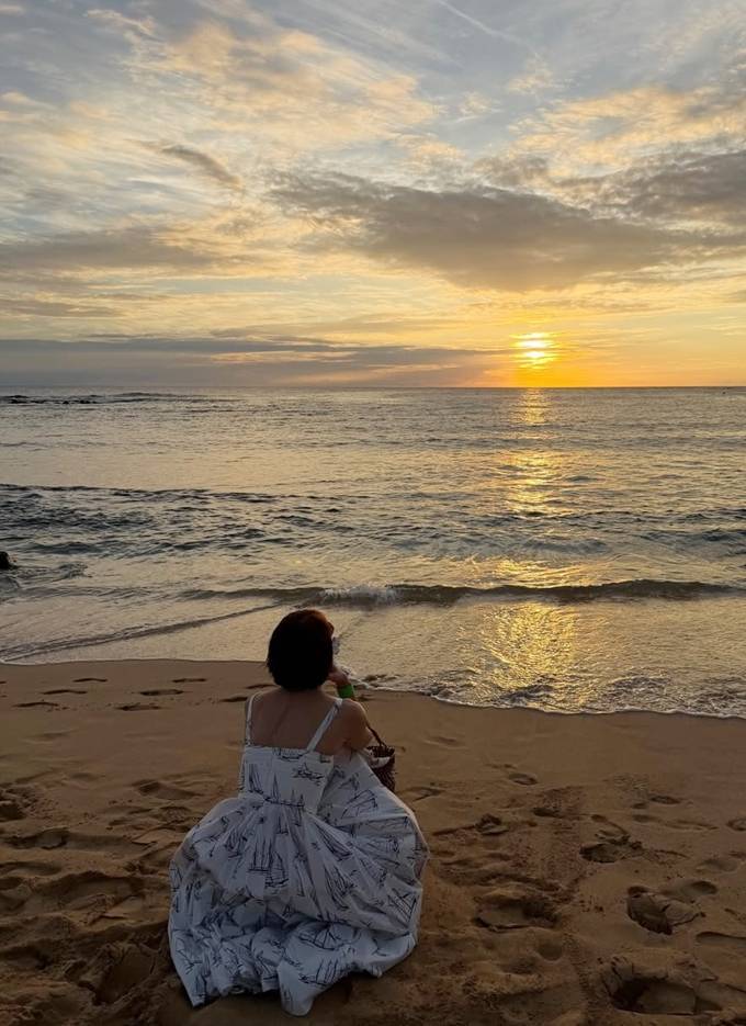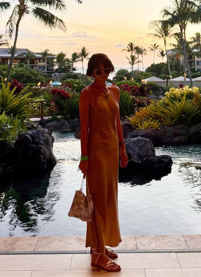 아나운서 최은경이 하와이에서 쇄골 라인을 드러낸 핫한 슬립 원피스 리조트룩으로 50대의 우아미를 발산했다.