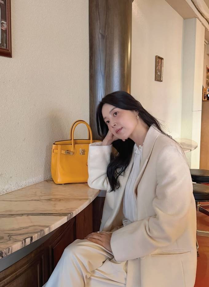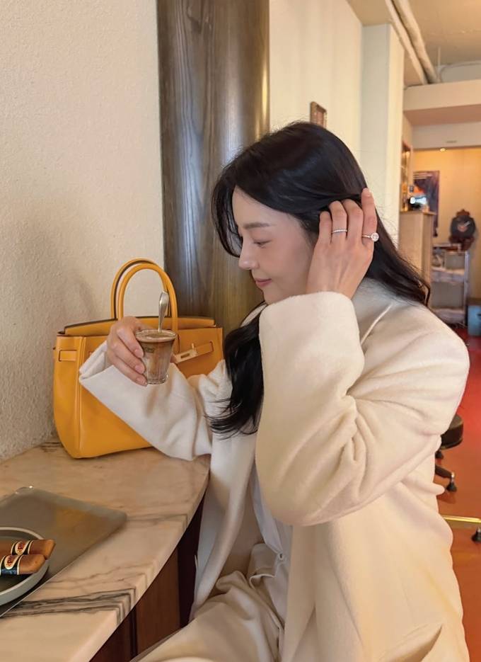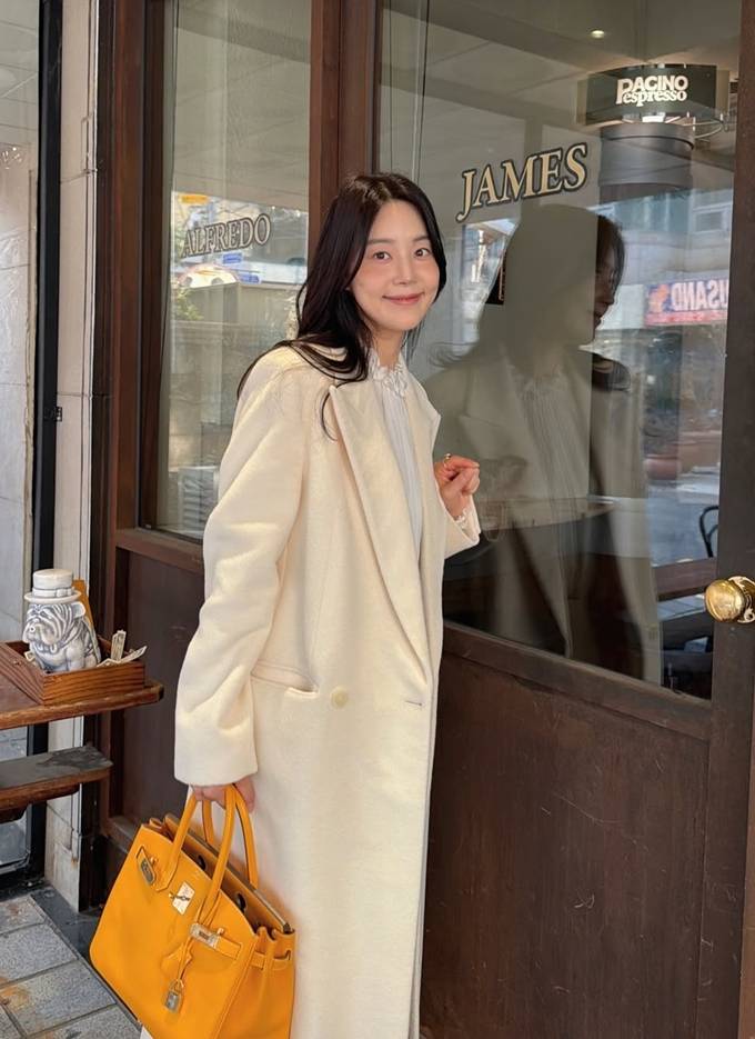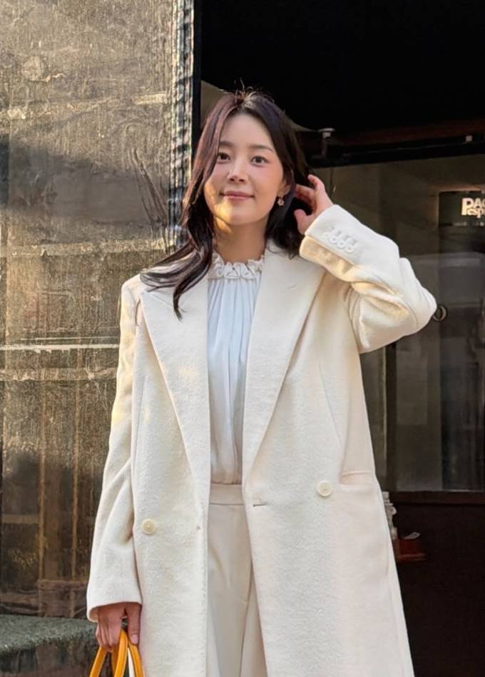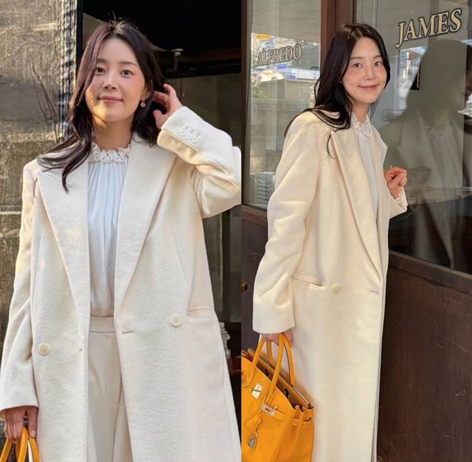 배우 한지혜가 화이트 톤온톤 코트 카페 외출룩으로 클래식한 품격을 드러냈다.