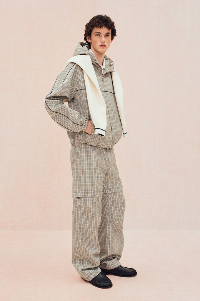 전통적인 테일러링 코드는 느슨한 실루엣, 가벼운 소재, 라운지웨어와의 예상치 못한 조합을 통해 여유롭고 우아한 남성 프레피룩으로 업데이트 되었다.