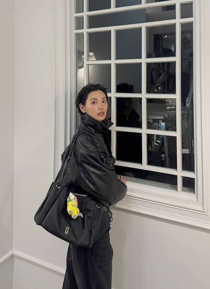 그룹 애프터스쿨의 출신의 배우 나나가 숏컷 헤어 스타일에 레더 재킷 데일리룩으로 더 힙해 보이는 카리스마를 발산했다.