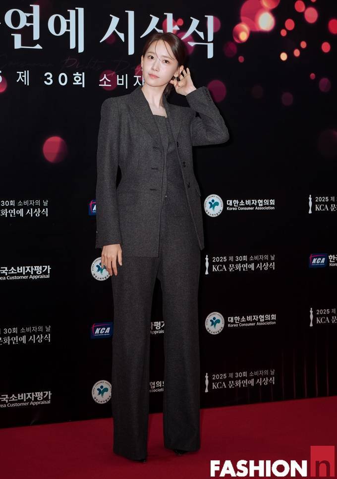 소녀시대 윤아(임윤아)가 클래식한 쓰리피스 슈트룩으로 변함없는 꽃사슴 미모를 발산했다.