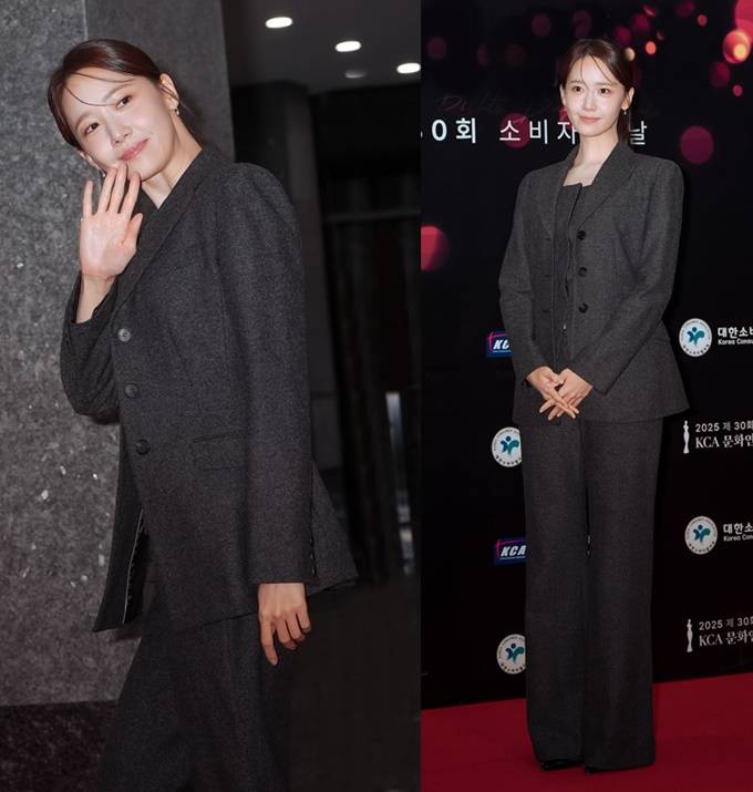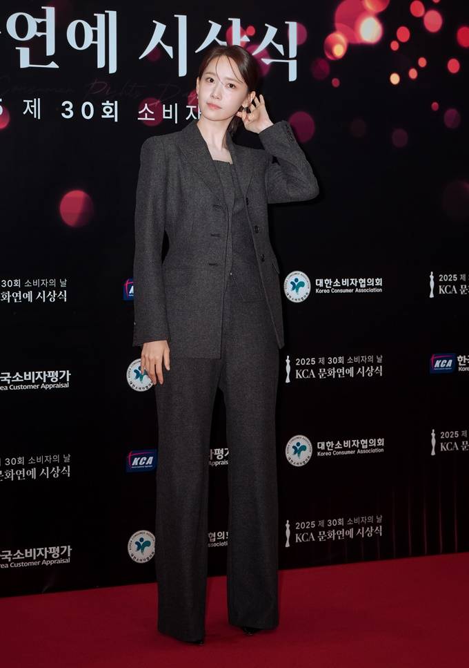 소녀시대 윤아(임윤아)가 클래식한 쓰리피스 슈트룩으로 변함없는 꽃사슴 미모를 발산했다.
