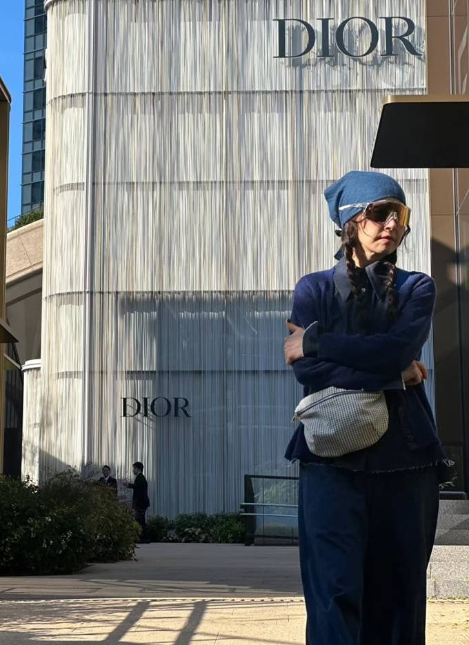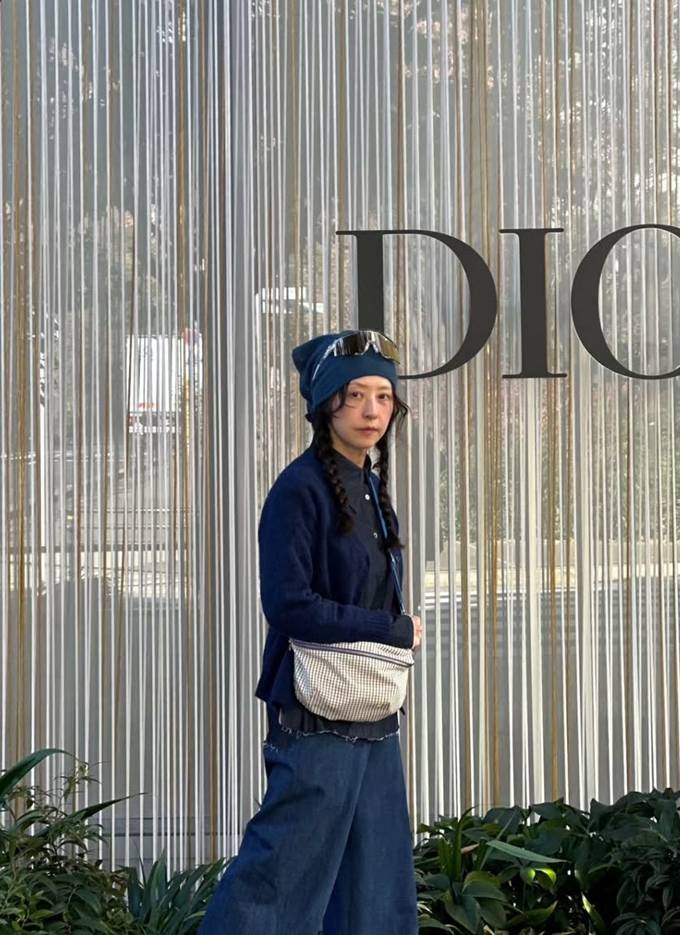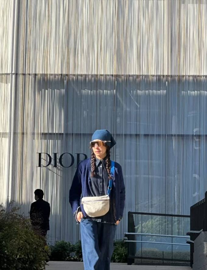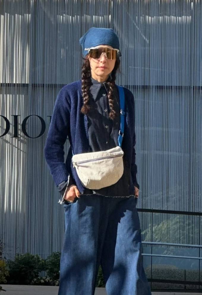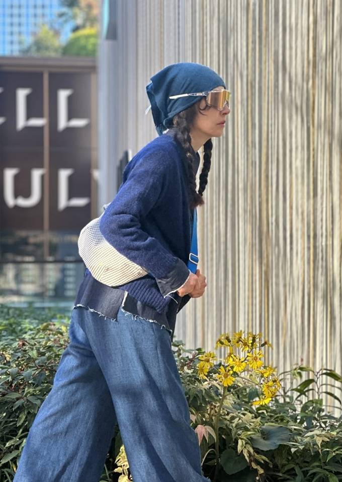 또 블랙 셔츠 위에 네이비 니트 카디건을 입고 와이드핏 데님 팬츠를 매치한 톤온톤 스타일로 60세 나이가 믿기지 않는 걸리시룩을 완성했다.