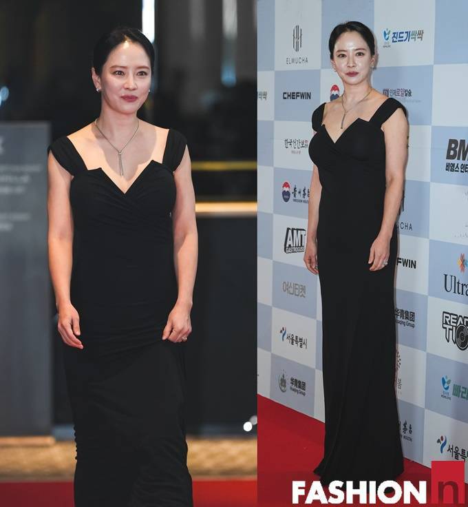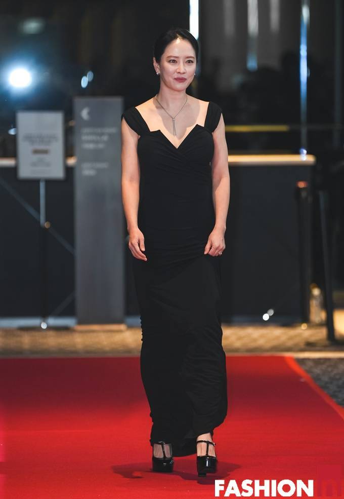 영화배우가 선정한 최고 배우상을 받은 송지효는 이날 초밀착 블랙 드레스룩으로 시선을 사로잡았다.
