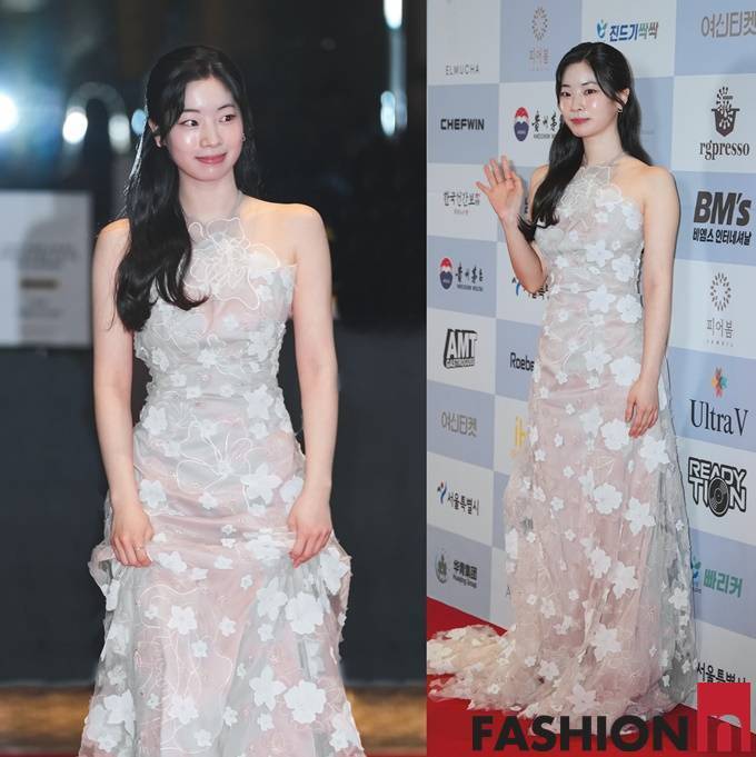 1. 1.[패션엔 포토] 트와이스 다현, 꽃같은 미모! 레드카펫 수놓은 플라워 자수 장식 드...