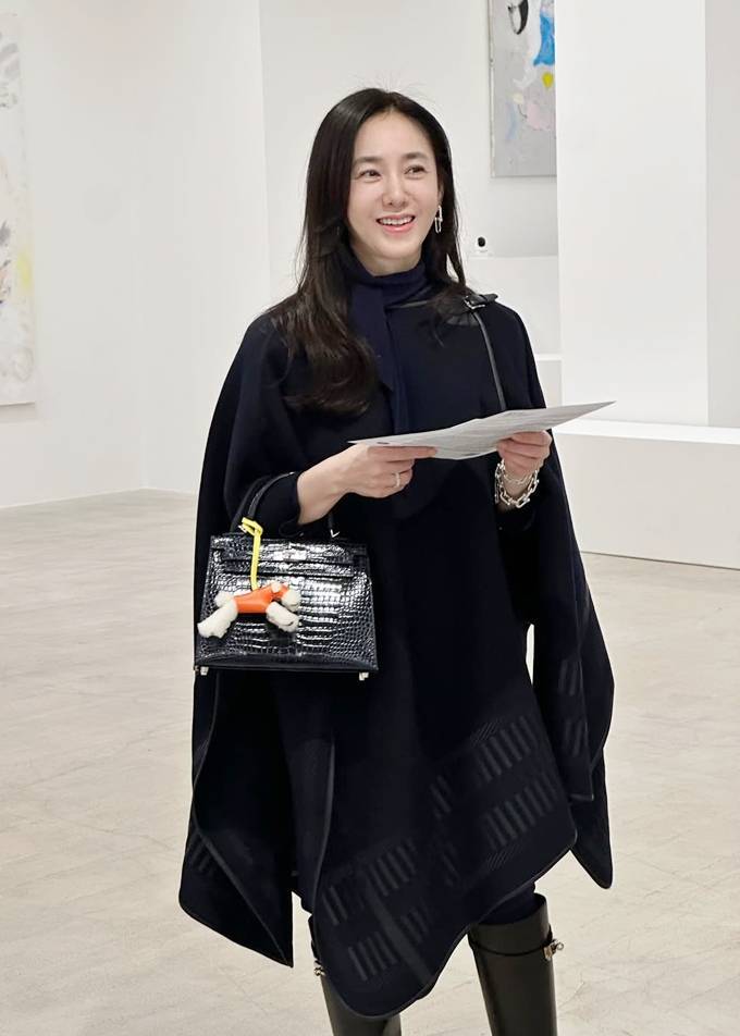▶ 배우 박주미는 지난 11월  미니멀한 실루엣이 매력적인 블랙 케이프 코트룩으로 우아한 전시회룩을 연출했다.
