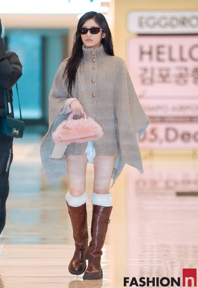 ▶ 그룹 아이브 멤버 이서는 지난 11월 하이텍 니트 케이프 코트를 매치한 하의실종룩으로 시크하면서도 러블리한 공항패션을 연출했다.