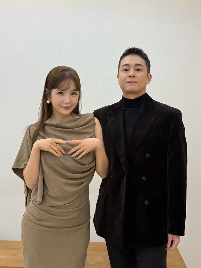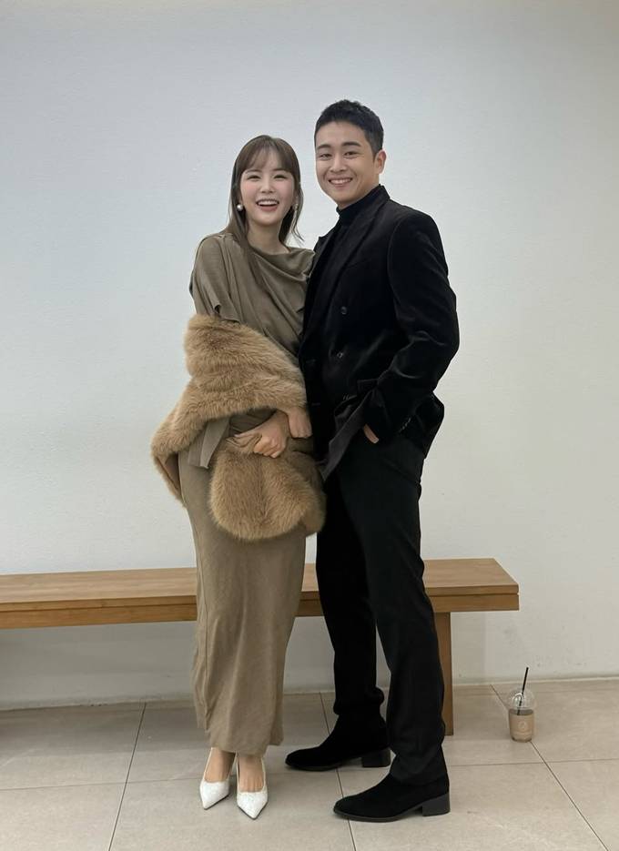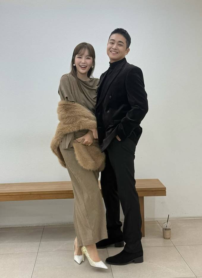 공개한 사진에서 장영란은 카멜 컬러의 롱 스커트와 케이프 톱의 셋업 드레스를, 남편 한창은 블랙 팬츠와 터틀넥에 블랙 더블 버튼 재킷의 캐주얼 슈트로 훈훈하면서도 다정한 MC룩을 선보였다.