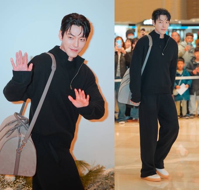 이날 김우빈은 블랙 니트 트레이닝 팬츠와 스웨터 셋업의 트레이닝룩으로 편안하면서도 캐주얼한 백화점 나들이 스타일을 선보였다.