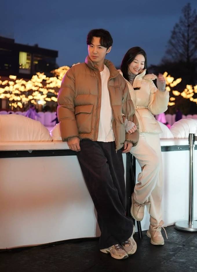 공개한 사진에서 류이서는 아이보리 벨티드 광택 숏패딩을 입었으며, 전진은 브라운 컬러의 숏패딩으로 다정한 숏패딩 커플룩을 선보였다.