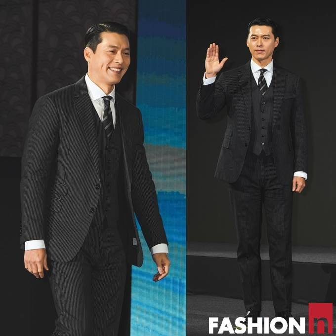 배우 현빈이 데뷔 22년만에 몸무게 14kg를 찌운 가운데 한층 푸근해진 비주얼의 쓰리피스 슈트핏으로 조각각같은 비주얼을 자랑했다.