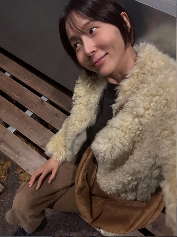 ▶ 배우 기은세는 부드러운 터치와 은은한 광택감이 흐르는 하이넥 디자인의 페이크 재킷으로 세련되고 고급스러운 겨울 스타일을 완성했다.