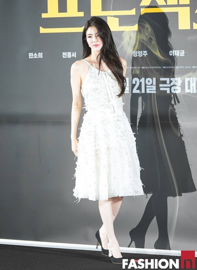 배우 한소희가 스팽글 장식의 홀터넥 화이트 드레스룩으로 시선을 강탈했다.