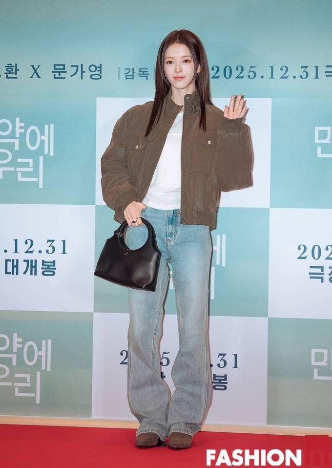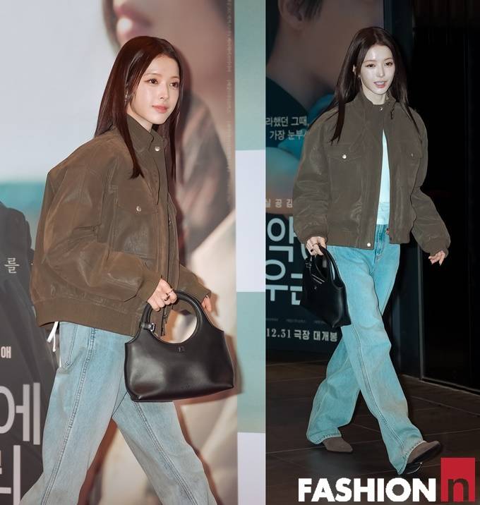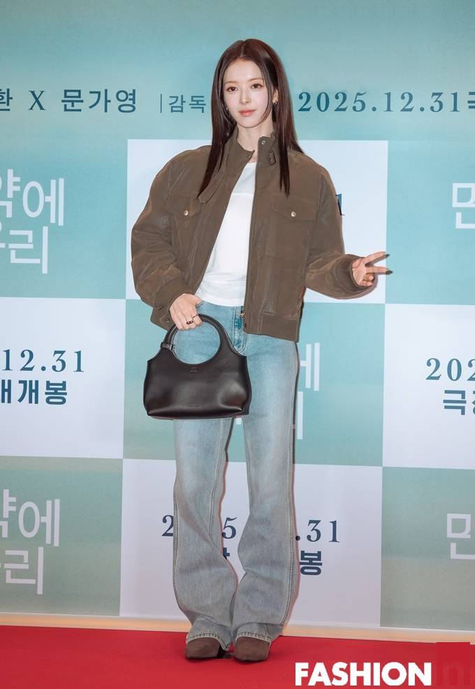 배우 노정의가 봄버 재킷과 청바지를 매치한 스타일리시한 시사회룩으로 눈부신 미모를 빛냈다.