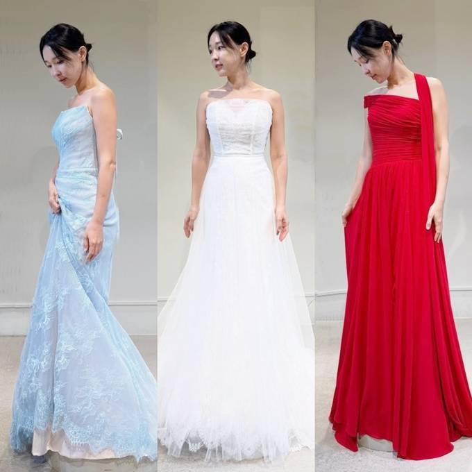 공개한 사진에서 이지혜는 쇄골 라인이 드러난 블루, 레드, 화이트 컬러의 오프숄더 롱 드레스룩으로 슬림하면서도 우아한 여성미를 발산했다.
