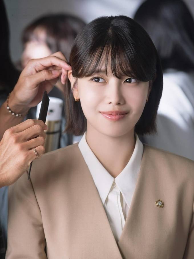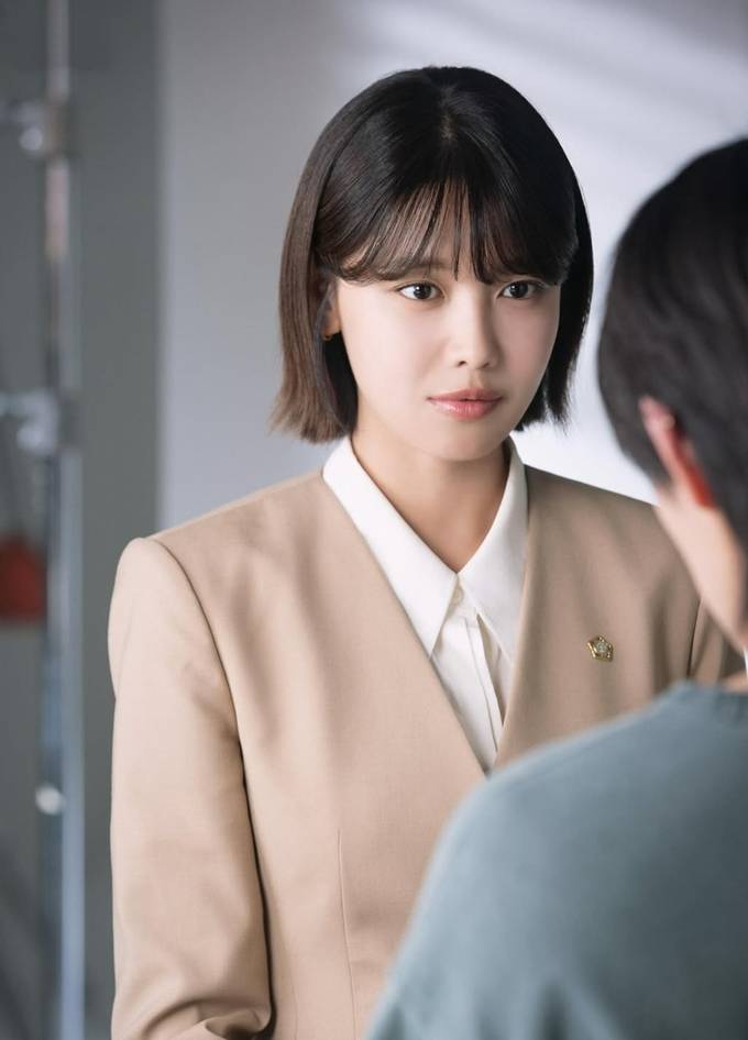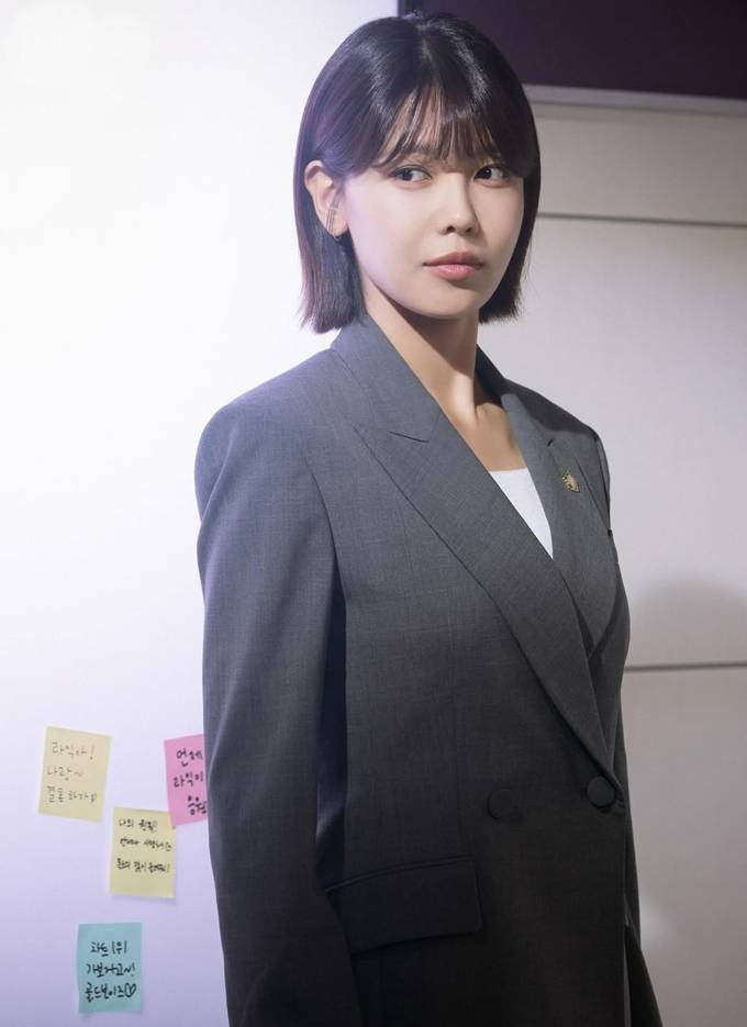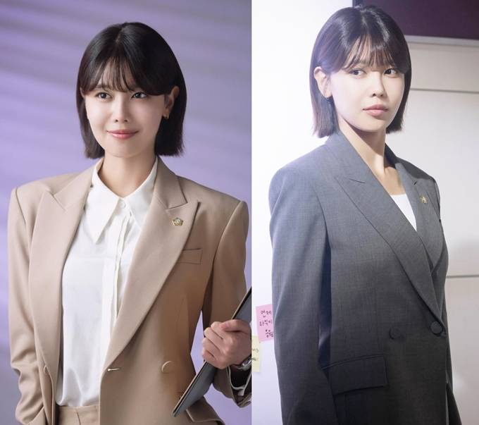 공개한 사진에서 수영은 화이트 셔츠 블라우스에 베이지 재킷과 그레이 재킷을 매치한 절제되면서도 단아한 슈트로 파워풀한 커리어우먼의 변호사룩을 완성했다.