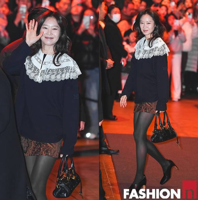 [패션엔 포토] 공효진, 10년 열애 끝 신민아•김우빈 결혼! 러블리한 쇼츠&케이프 미니멀 하객룩
