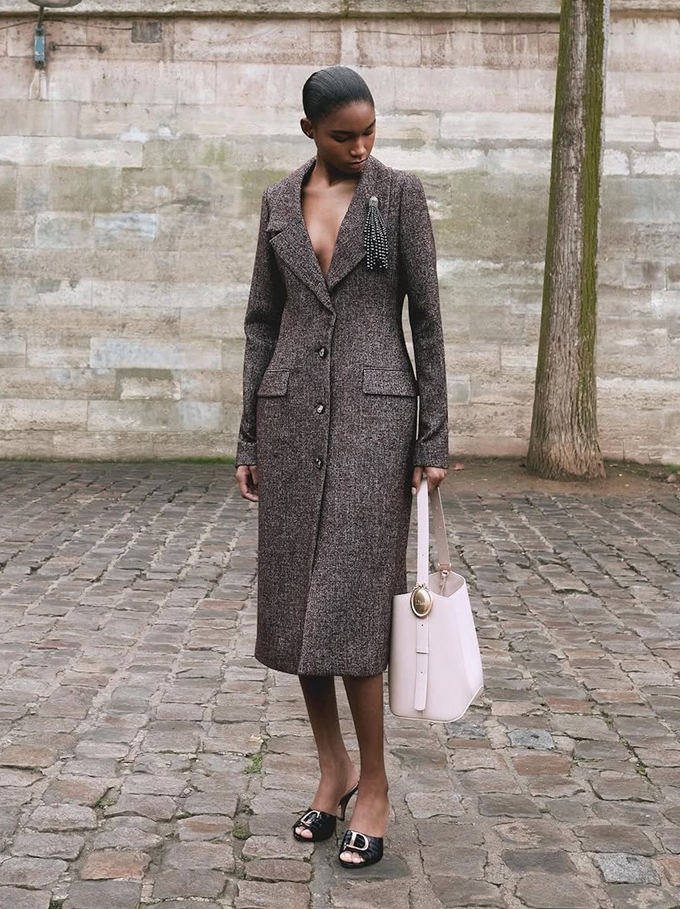 컬렉션 전반에는 디올의 상징적인 요소들이 자연스러운 일상의 감각과 결합된 과감한 실루엣으로 구현되고, 웅장함과 절제된 분위기가 균형을 이루며 컬렉션의 깊이를 더했다.