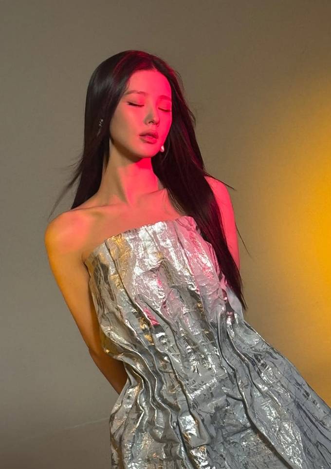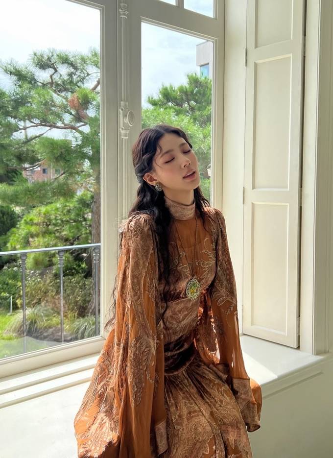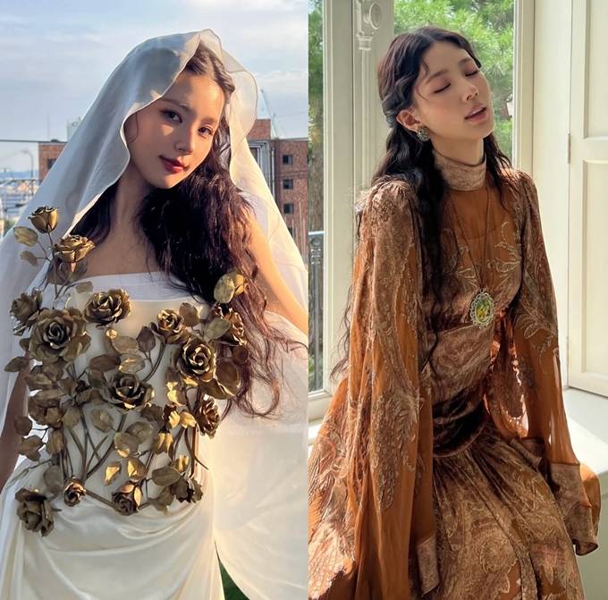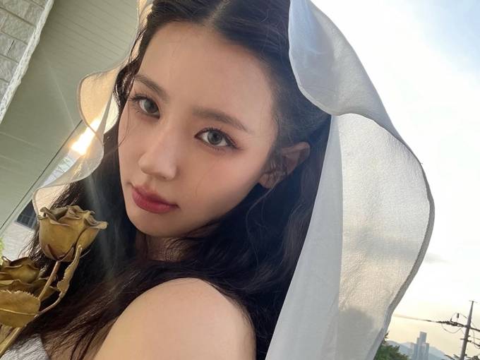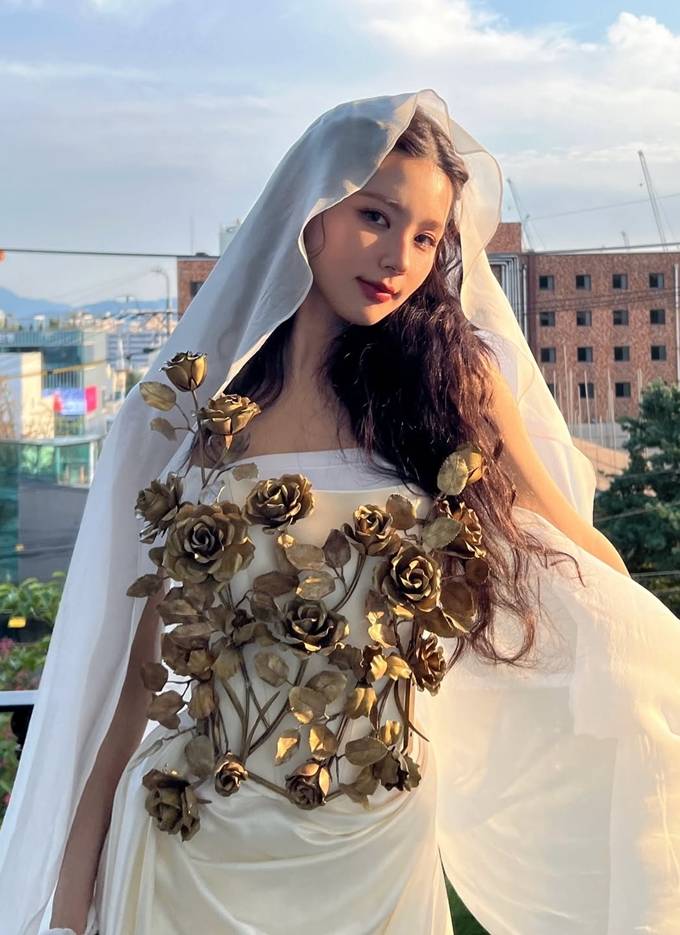그룹 아이들의 미연이 동화 속에서 튀어 나온 듯 판타지 로맨스 드레스룩으로 인형같은 미모를 발산했다.