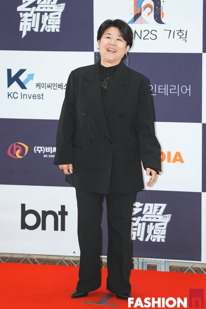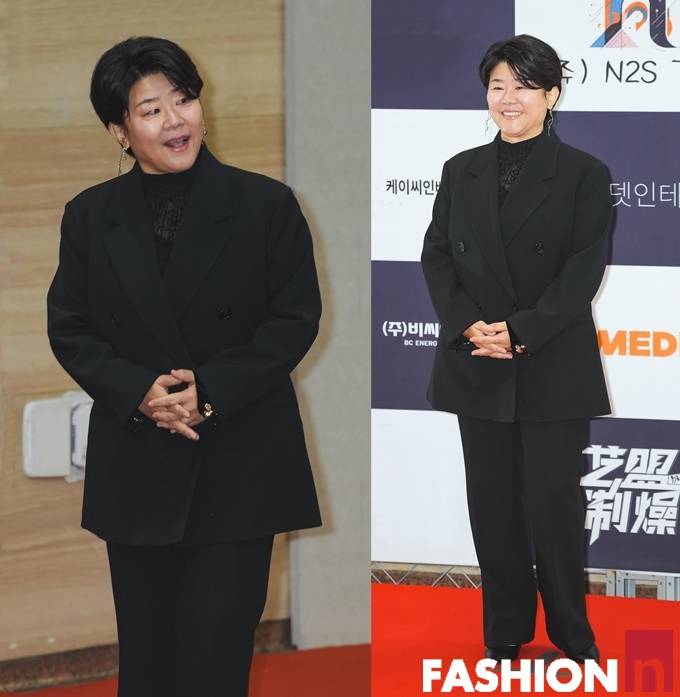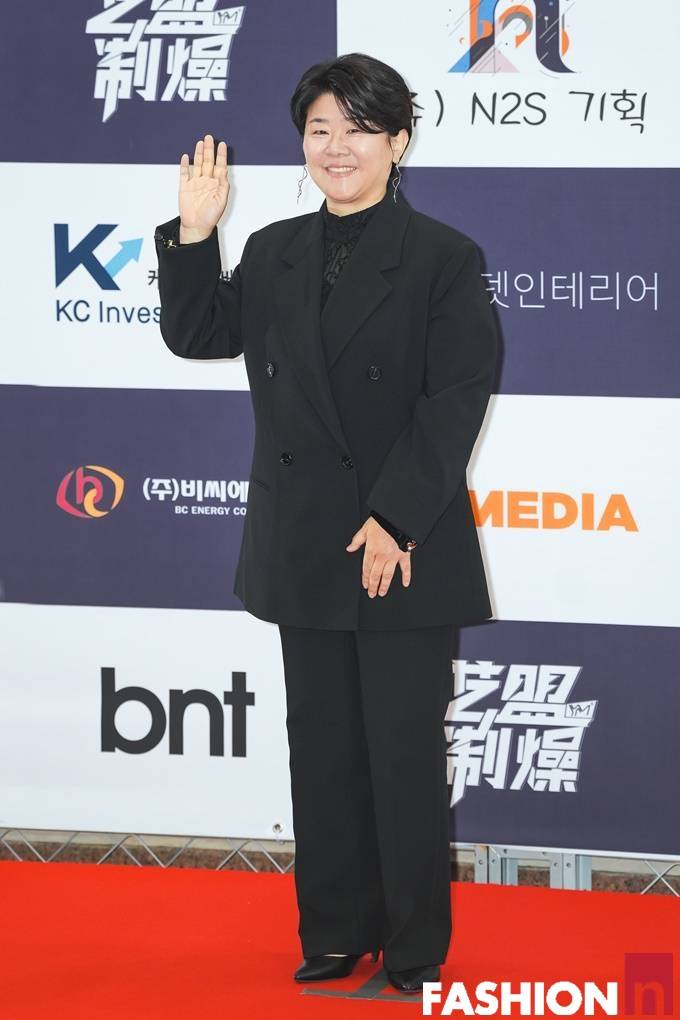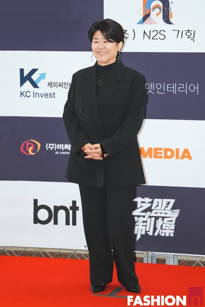배우 이정은 블랙 슈트룩으로 춘사영화제 레드카펫을 밝혔다.