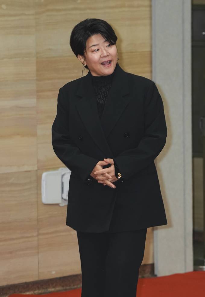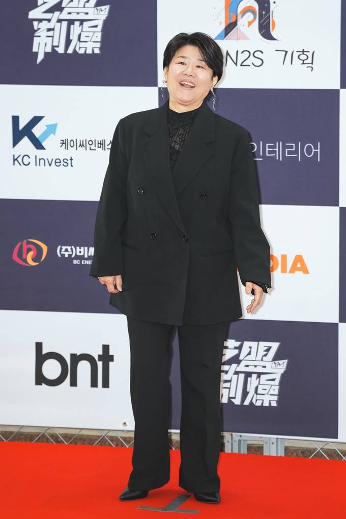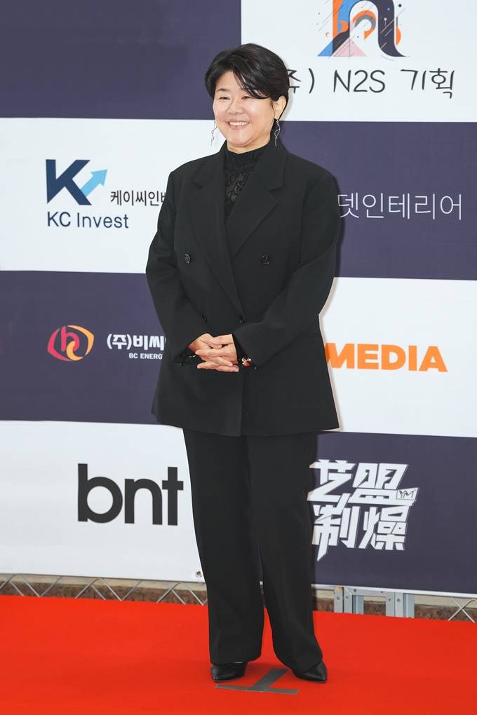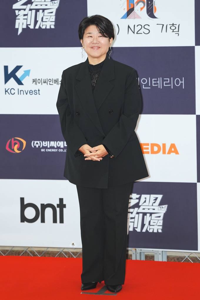 배우 이정은 블랙 슈트룩으로 춘사영화제 레드카펫을 밝혔다.