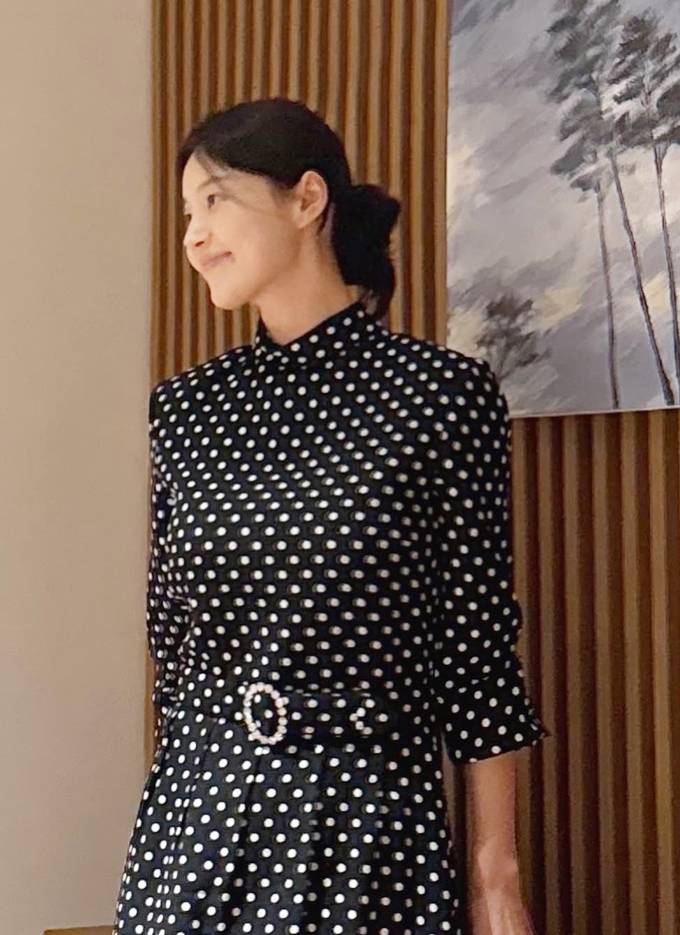 3. 3.한지혜, 땡땡이 원피스도 럭셔리! 검사 사모님 품격의 땡땡이 도트 원피스룩
