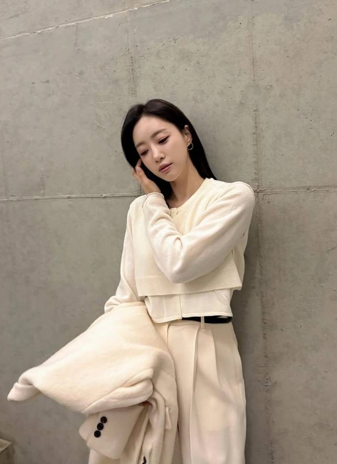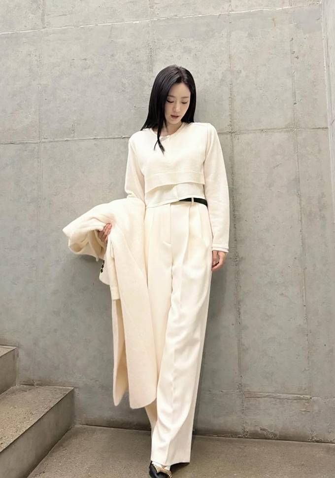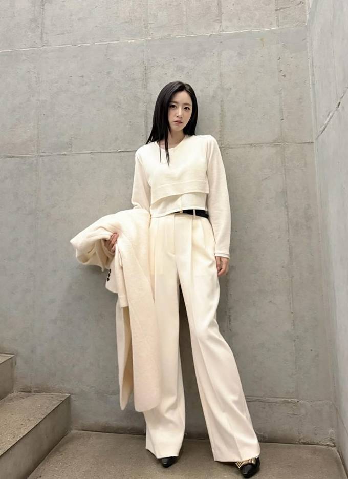 공개한 사진에서 함은정은 화이트 이너 위에 아이보리 컬러의 크롭 니트를 레이어드하고 하의로 아이보리 컬러의 투턱 팬츠를 입고 아이보리 코트를 걸친 얼죽코룩으로 단아하면서도 세련된 외출 스타일을 완성했다.