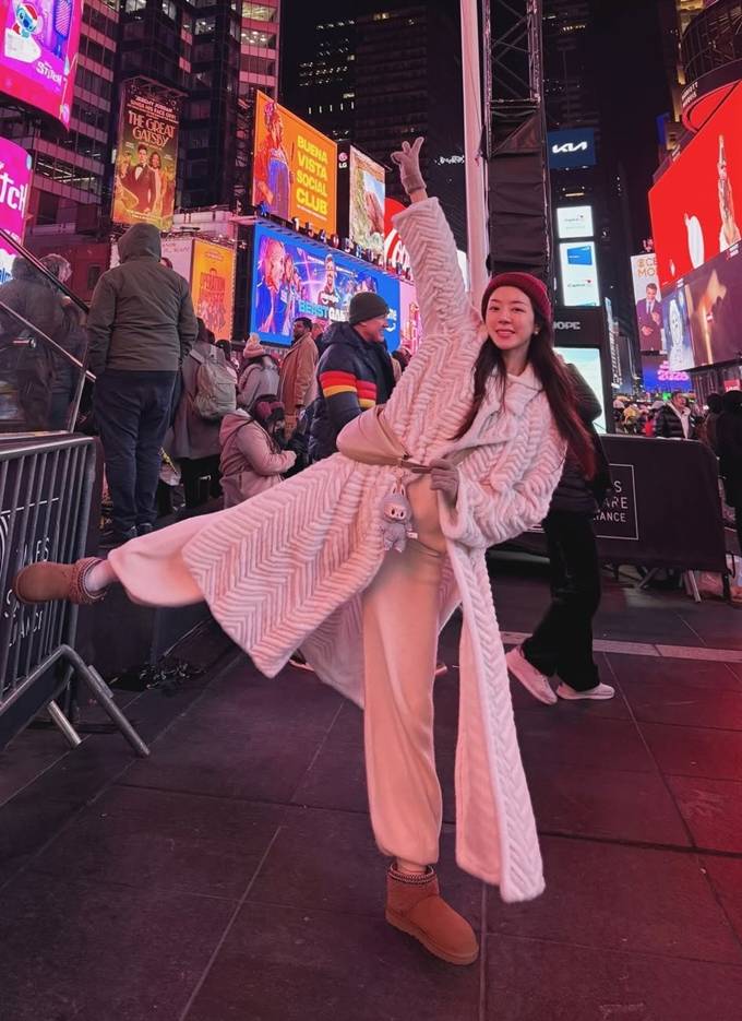 박한별, 뉴욕 크리스마스의 잇걸! 뉴욕 거리 휘저은 로맨틱 헤링본 퍼 코트룩