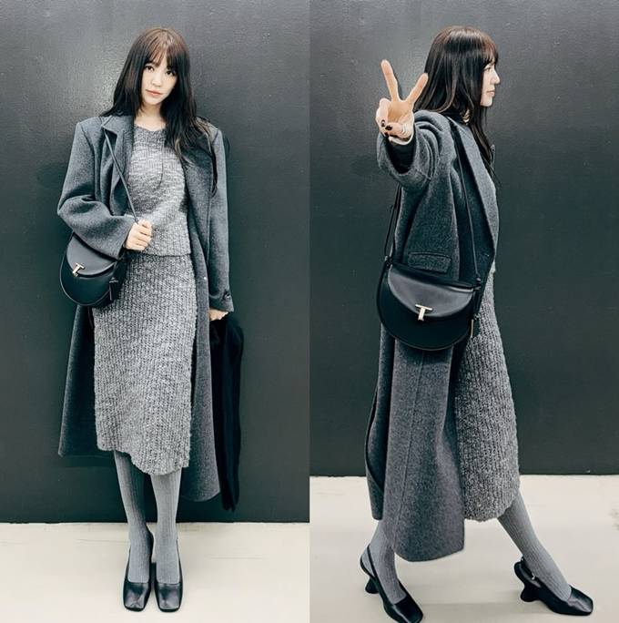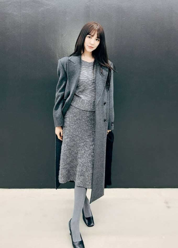 공개한 사진에서 윤은혜는 그레이 니트 스웨터와 롱 스커트 셋업에 그레이 스타킹을 매치하고 롱 코트를 걸친 톤온톤 스타일의 얼죽코룩으로 시크하면서도 세련된 도시녀의 모습을 선보였다.