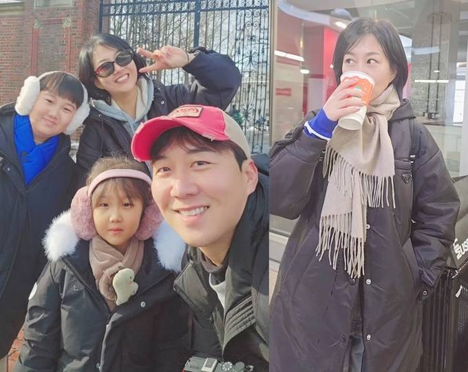 가수 장윤정이 폭풍성장한 1남 1녀 남매와 깔맞춤 블랙 패딩 패밀리룩으로 해외 여행을 떠났다.