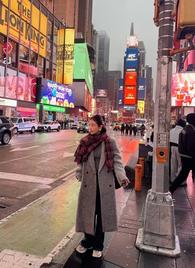 공개한 사진에서 기은세는 화려한 네온사인과 차가운 겨울 공기가 어우러진 도심을 배경으로 크리미한 컬러의 테디베어 재킷과 클래식한 무드의 그레이 톤의 롱 코트를 착용한 감각적인 여행룩으로 뉴욕의 연말과 연초 분위기에 빠져들었다.