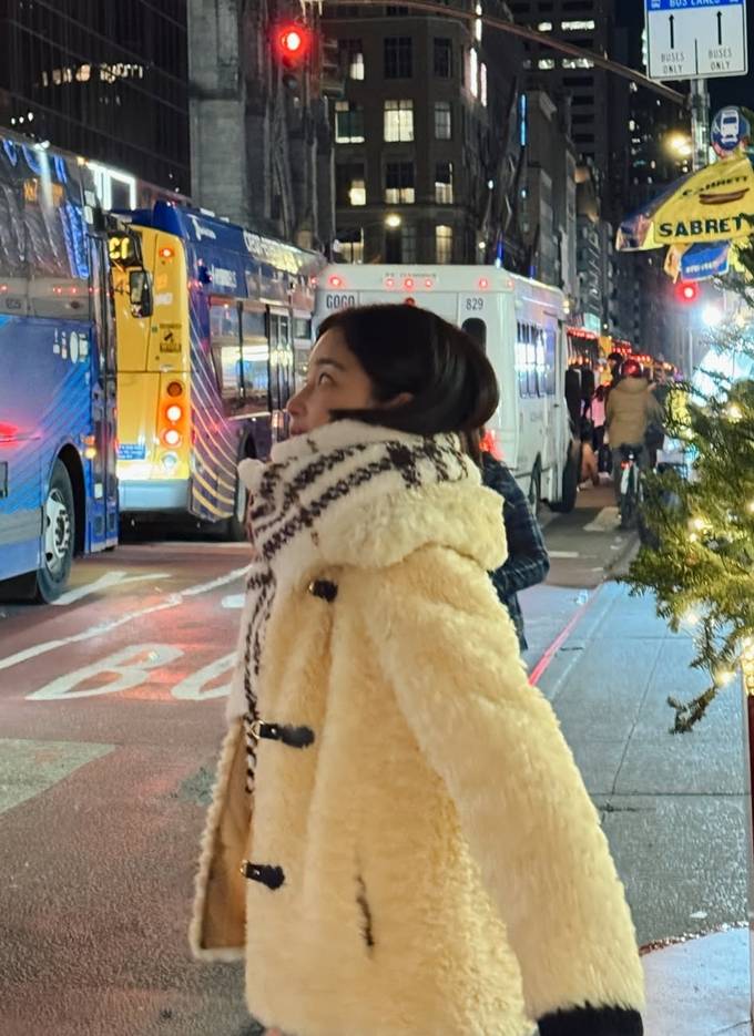배우 기은세가 뉴욕에서 테디베어 재킷과 클래식한 코트룩으로 홀리데이 시즌을 제대로 즐겼다.