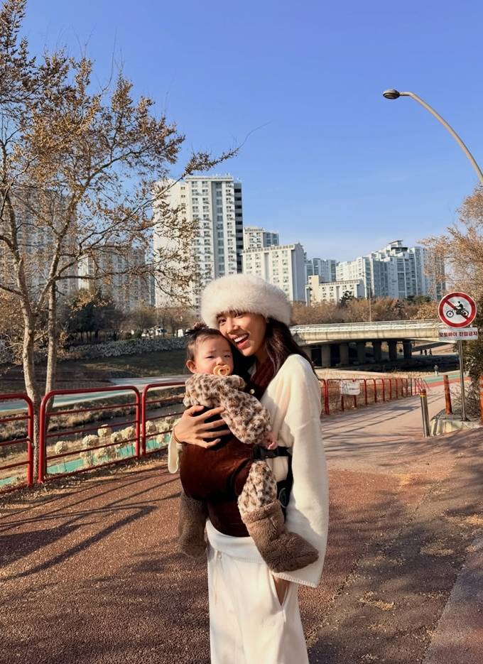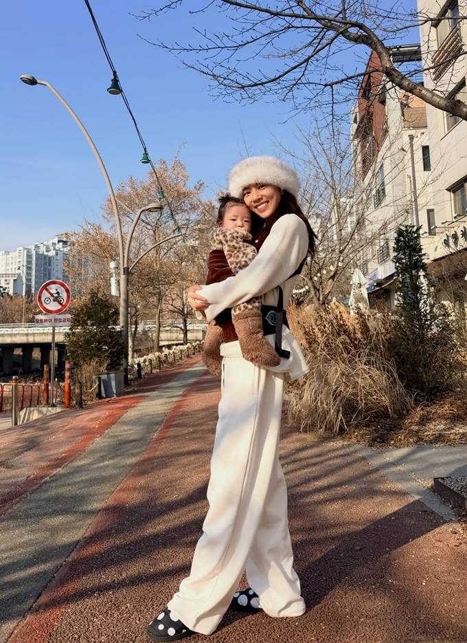 가수 겸 배우 손담비가 포근한 샤프카햇 산책룩으로 9개월 딸과 행복한 시간을 만끽했다.