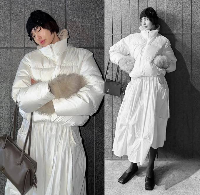 배우 나나가 화이트 숏패딩에 화이트 스커트를 매치한 톤온톤 숏패딩룩으로 패셔니스타 다운 면모를 드러냈다.
