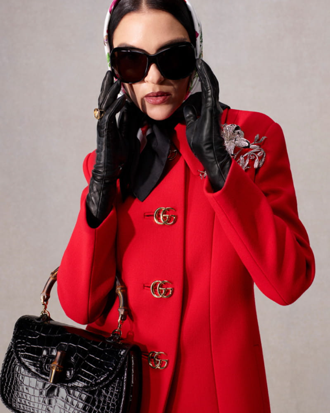 ‘인카차타(Incazzata·분노한 여자)’는 1960년대풍의 ‘리틀 레드 코트’를 착용한 채 열정적인 기질을 드러내고 ‘갈레리스타(Gallerista·갤러리 대표)’는 새로운 비율로 재해석된 구찌 뱀부 1947 핸드백으로 완성한 세련된 블랙 룩과 함께 당당하고 주체적인 애티튜드를 보여준다.