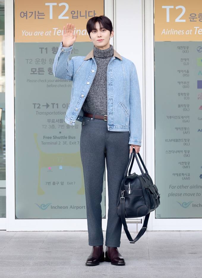 황민현, 데님 재킷과 니트 조합! 설렘 폭발 유러피언 캐주얼룩 피렌체 출국길