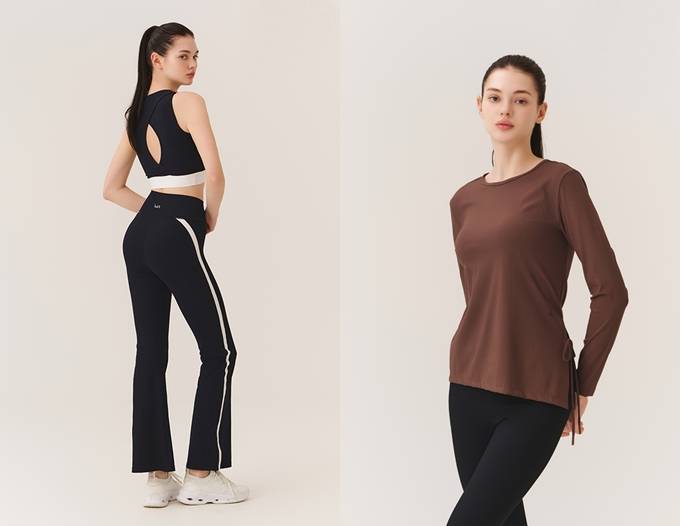 브라탑의 경우 러닝형의 어깨라인 디자인과 안정적인 기장의 크롭 스타일로, 실내 운동 시 단독으로 착용하거나 가벼운 아우터와 레이어드 하기에도 좋다.