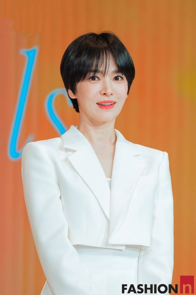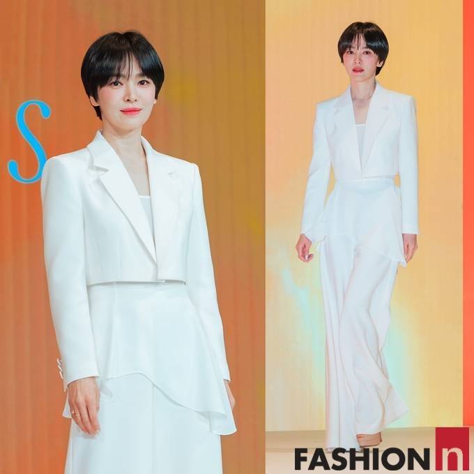 [패션엔 포토] 송혜교, 숏컷 파격 변신! 시크한 파워우먼 눈부신 화이트 슈트룩
