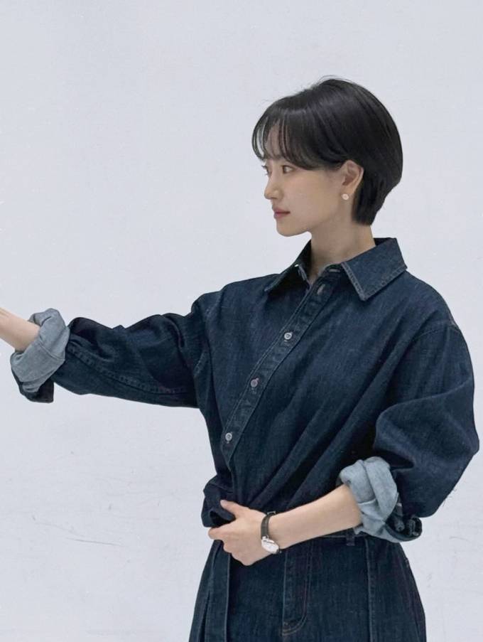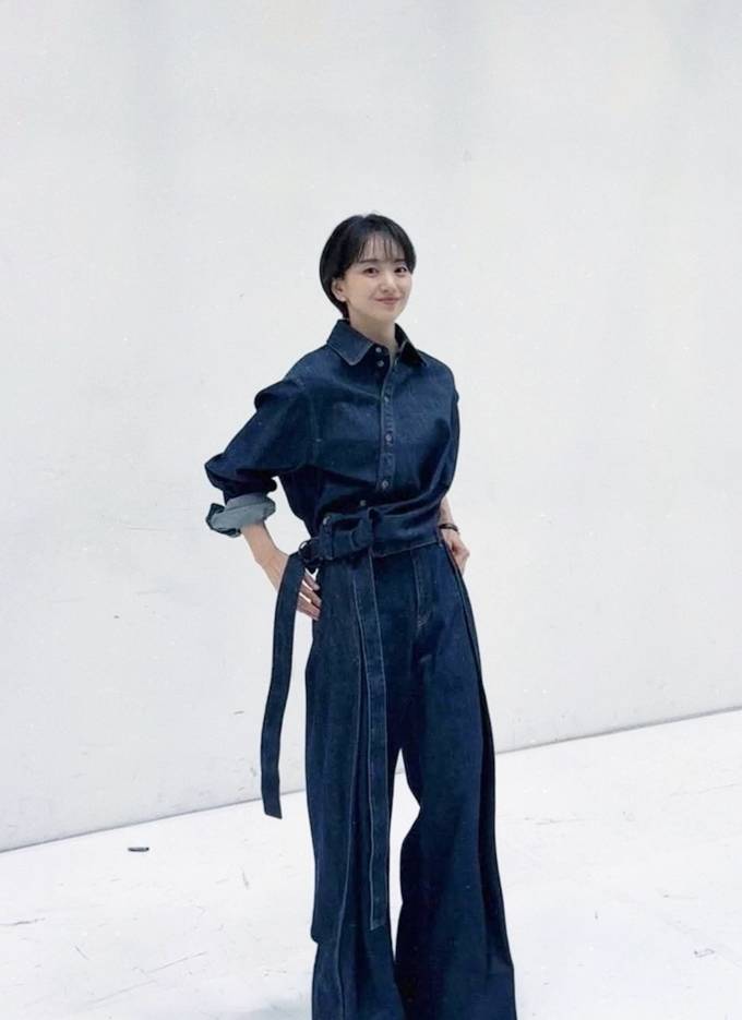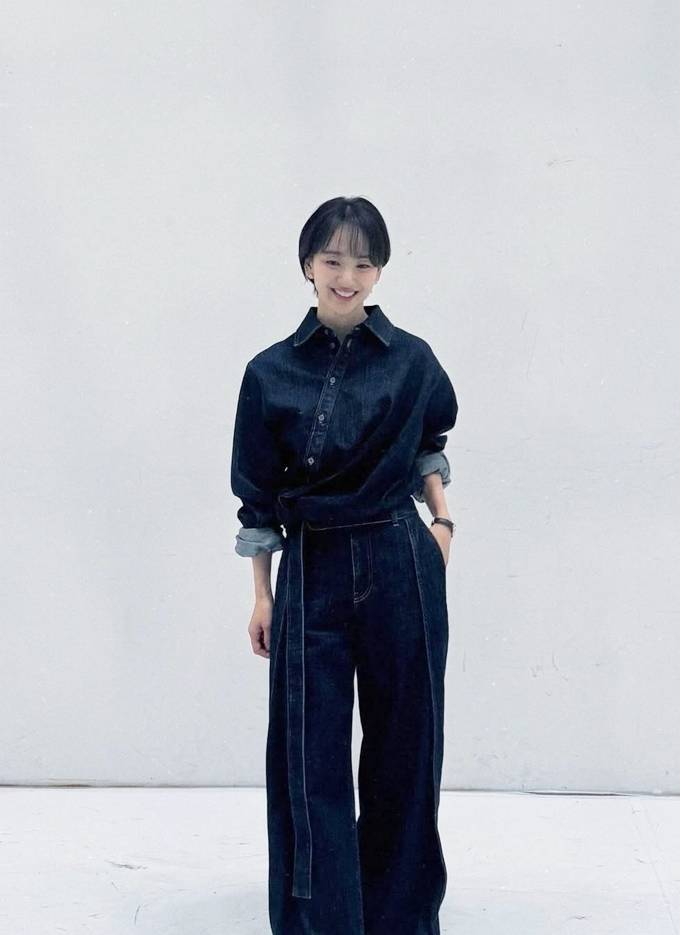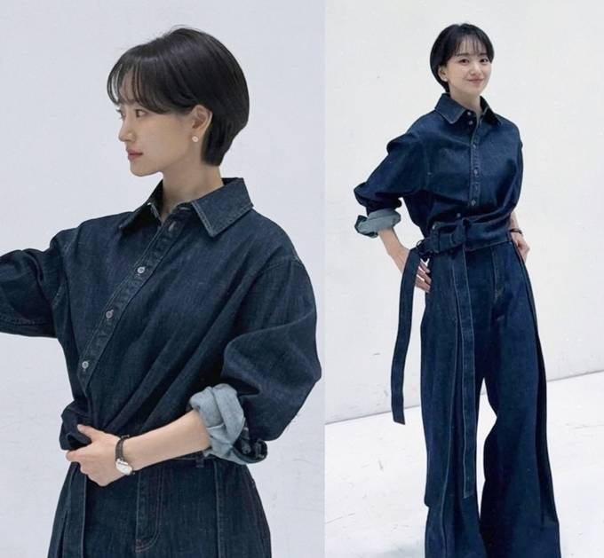 공개한 사진에서 원진아는 숏컷 헤어 스타일에 데님 벨트가 멋스러운 와이드 핏 데님 팬츠와 데님 셔츠의 청청패션으로 청순하면서도 시크한 분위기를 자아냈다.