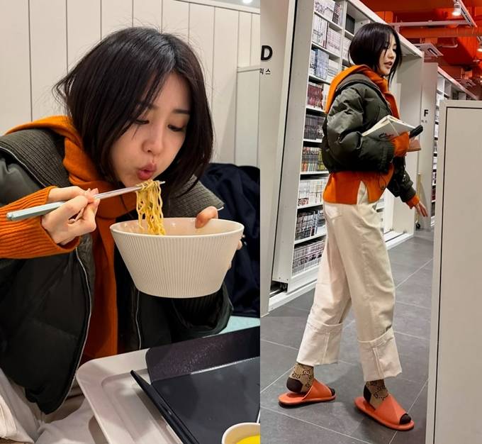 박하선, 만화방에서 실내화 신고 라면! 털털한 목동여신 숏패딩 출근 데일리룩