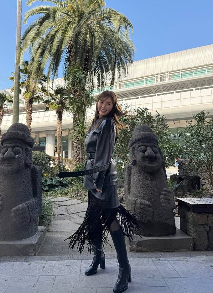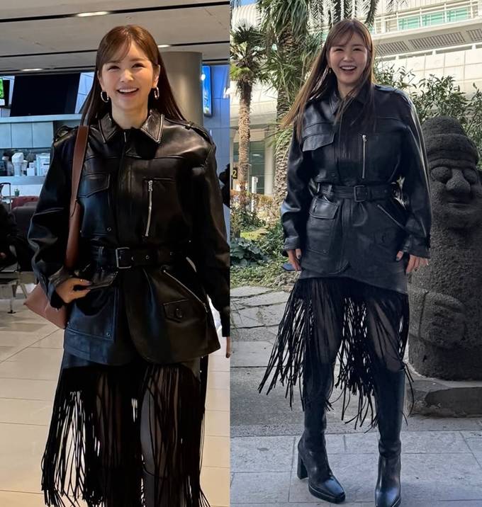 방송인 장영란이 프린지 스커트에 벨티드 레더 재킷을 매치한 핫한 출장룩으로 눈길을 사로잡았다.