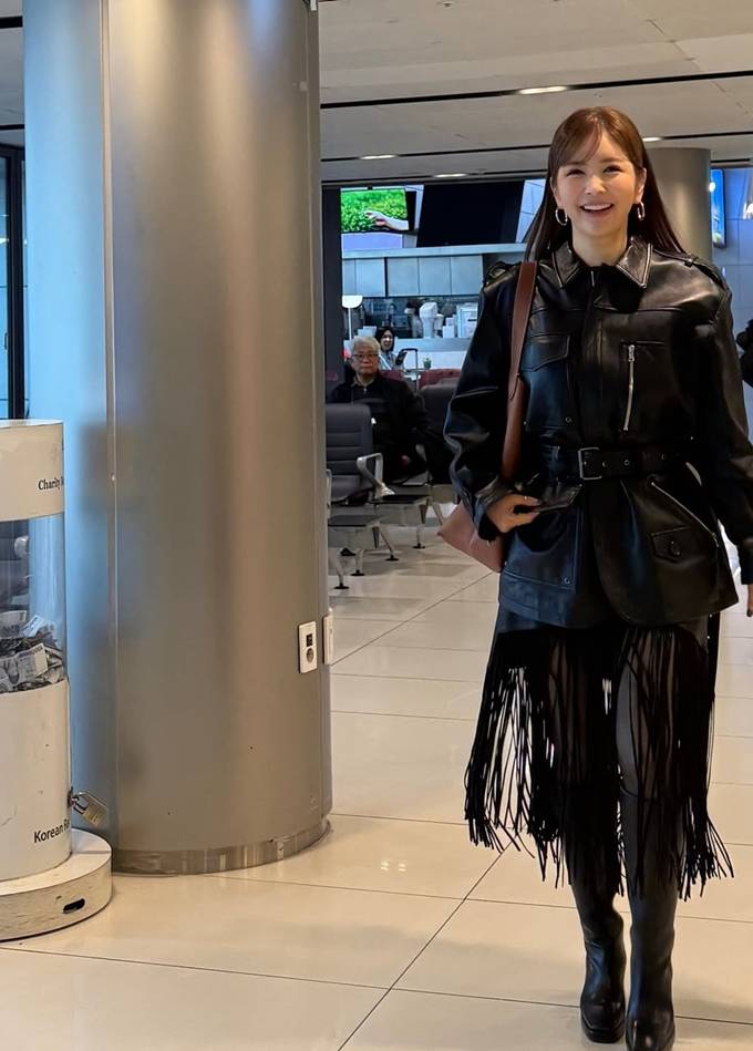 장영란, 출장룩이 너무 핫해! 한계없는 워킹맘 올 블랙 레더 재킷 프린지룩
