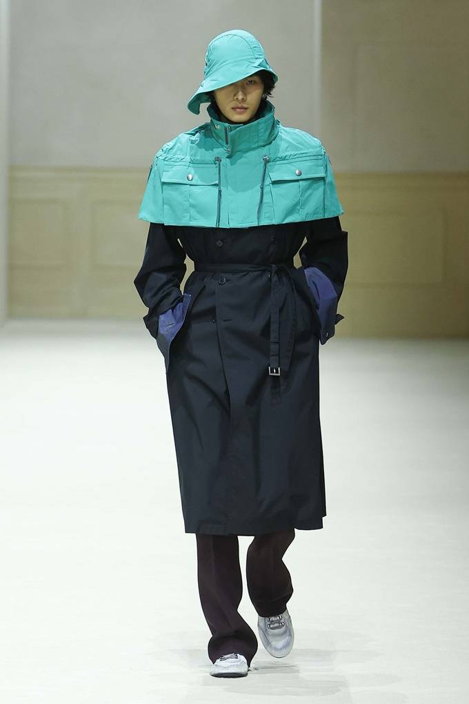 드레이핑된 니트웨어 아래로 긴 소매가 살짝 드러나고, 트렌치 코트 위에 걸친 화사한 컬러 케이프를 포함해 모자는 단연한 주인공으로 다양한 스타일, 모양 색상으로 등장했다.