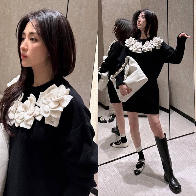 공개한 사진과 영상에서 박하선은 넥 라인을 따라 입체적으로 장식된 화이트 플라워 디테일의 블랙 미니 원피스룩으로 단아하면서도 로맨틱한 분위기를 자아냈다.