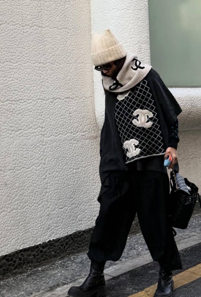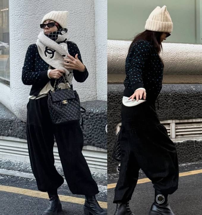 특히 샤넬 머플러와 캣비니, 블랙 핸드백 등의 믹스앤매치가 더 젊은 분위기를 자아냈다.